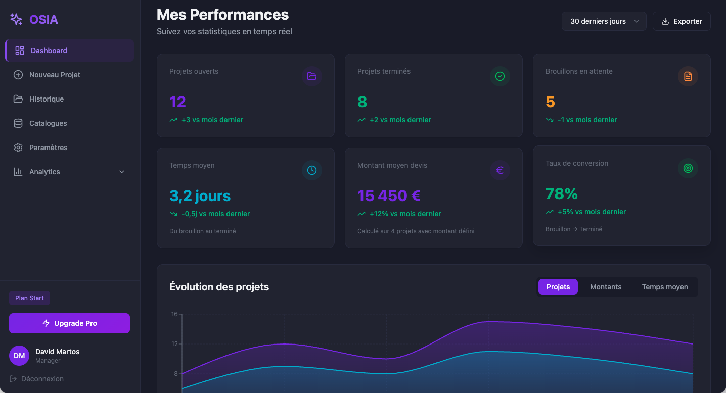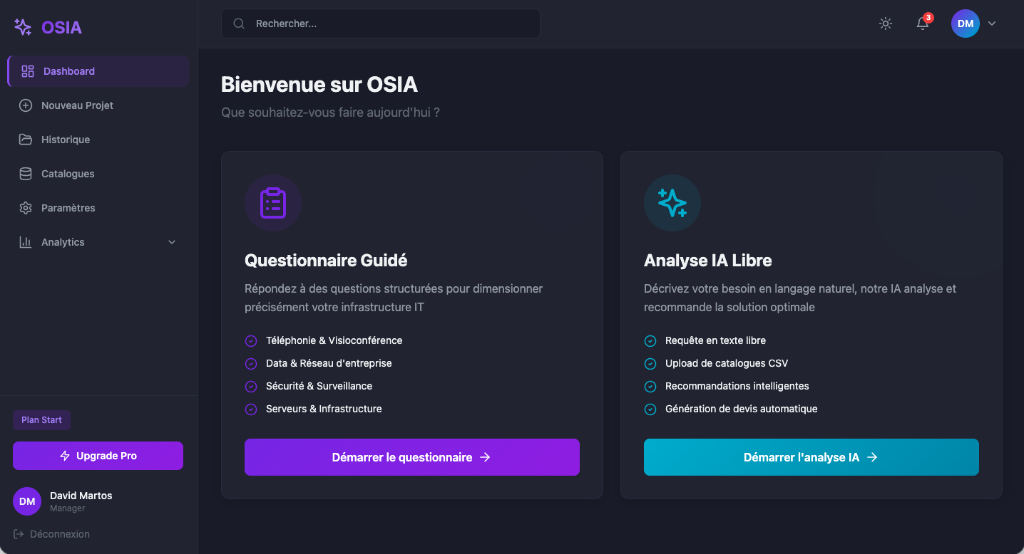 Plus ergonomique, boosté à l’IA, Osia se sert de votre catalogue pour faire un chiffrage là où un CPQ a besoin d’informations entrées par vos soins.